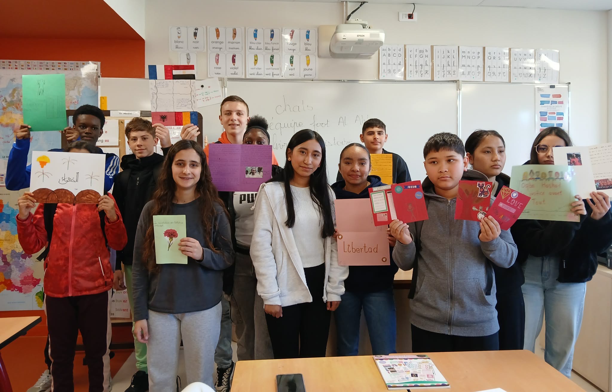 Les élèves du dispositif UPE2A, encadrés par Mmes Quillasi, Flassayer et Cluzel, ont également accueilli les bénévoles d'Amnesty International avec qui ils ont rédigé des cartes de soutien pour un jeune homme dont les droits ont été bafoués.
