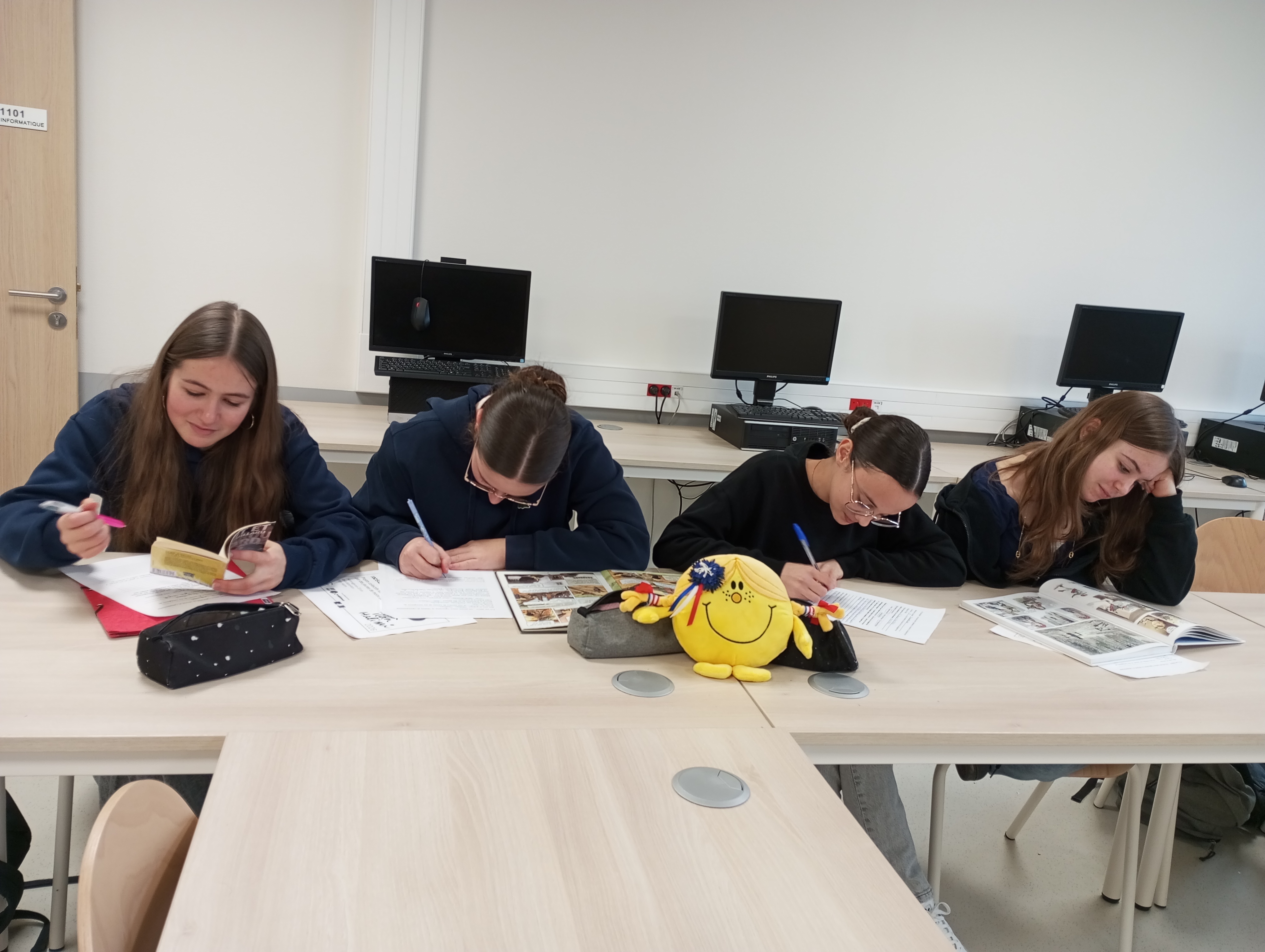 Les élèves volontaires du Conseil de Vie Collégienne participent au Prix Ilan Halimi cette année. Grâce au projet « Ma lecture pour contrer l’ignorance, le racisme et l’antisémitisme », ils se réunissent pendant la pause méridienne pour préparer et réaliser un film qui sera tourné cette semaine au CDI du collège, en s'appuyant sur des lectures d'ouvrages sélectionnés par Madame Cluzel, professeure documentaliste et Mme Sassolas, référente Laïcité du collège, toutes deux investies auprès des élèves.