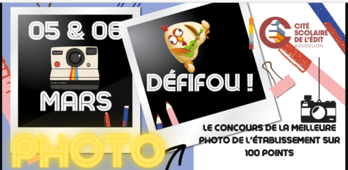 Le FSE du collège a organisé les 5 et 6 mars, les photos de classe pour le collège ainsi qu'un défifou (les classes sont en compétition pour être les plus beaux, les plus drôles et avec des objets imposés pour gagner des points).